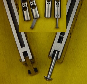 Od jakiegoś czasu, zaciekawiły mnie noże, popularnie zwane u nas „motylkami” czy (rzadziej) balisongami. Bajerancki sposób otwierania, ciekawa budowa i te przyjemne dla ucha kliki… Po kilku tygodniach zabawy, kupionym na bazarze za 15 złotych motylem, postanowiłem zaopatrzyć się w coś z wyższej półki. Mój wybór padł na balisong`a znanej i cenionej firmy Benchmade, która ma w swojej ofercie dobrych kilka ich typów. Wspólną cechą wszystkich noży spod marki BM jest dokładność wykonania, wysokiej jakości materiały i patenty, doskonale sprawdzające się w praktyce…czy tak jest i tym razem? Szybko zlustrowałem całą kolekcję balisongów z katalogu BM i zdecydowałem się na model, oznaczonego numerem 46, o ostrzu w kształcie włóczni (z angielskiego „spear blade”) oraz – będąc tradycjonalistą - wersję „plain”, bez pokrycia rękojeści (do wyboru były pokrycia specjalnym, czarnym „proszkiem” lub anodyzowane). Po 2 tygodniach, nóż wylądował w moich rękach…. Przy pierwszym kontakcie szok – balisong jest lekki, wręcz za lekki, jak początkowo mi się zdawało. Bawiłem się wcześniej podobnym nożem marki Herbertz, który był dosłownie 2 razy cięższy od Benchmade`a!!! Zasługą tego są rękojeści ze stopu tytanu, odporne, ale – jak już napisałem wcześniej – naprawdę lekkie. Połączono je z ostrzem za pomocą śrub w standardzie torx (rozmiar 8), które w razie potrzeby (czytaj poluzowania) można bez problemu dokręcić… |