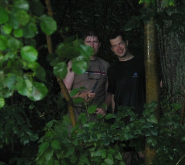 Kolejna „akcja” przytrafiła się na jeziorze Szeląg Wielki. Przybiliśmy na dziko do brzegu, a właściwie do starego wędkarskiego pomostu, po południowej stronie jeziora. Teren zarośnięty, dziki, bezludny. Świetny klimat „survivalowy” jednym słowem - to lubię. Niebo lekko się zasnuło, więc dziewczyny rozstawiły bomówkę (namiot rozpinany na bomie na jachcie) a ja z kumplem postanowiliśmy wybrać się 3 km przez las i opuszczoną wieś do stanicy rybackiej po świeżego lina na kolację. Standardowo zabrałem ze sobą MK.VI, a do rękojeści włożyłem zwinięte trzy dychy na rybkę (ciekawy portfel, co?). Jak już stawiliśmy się w stanicy, okazało się iż ryby już nie ma... a stary rybak z pomiętym szlugiem w palcach rzucił tylko „no, tak o 7 rano panowie przyjdźcie, a potem skup jes i ribe zdajem!”. W międzyczasie zrobiło się ciemno, wietrznie i zaczęło padać. Nie uszliśmy nawet 500m jak nad nami rozpętało się piekło... to była chyba najgorsza burza jaką pamiętam. Wichura przyginała drzewa, deszcz walił tak, że aż bolały plecy od siekących jak bicze strug wody i gradu, widoczność może 100m i coraz ciemniej. Gdy znaleźliśmy się w lesie było już prawie tak ciemno jak w nocy. I wtedy dotarło do nas, że dwa km dalej stoi na wodzie nasz jacht. Znaczy mieliśmy nadzieję, że jest jeszcze na wodzie a nie wywiany na brzeg, że ma jeszcze maszt w jednym kawałku i że nie rozwaliło nam burty gdy wiatr walił nim o pomost. Bo kotwice puściły na pewno w takich warunkach. No a na jachcie nasze żony... generalnie sytuacja nie do pozazdroszczenia. Zaczęliśmy przedzierać się przez las, który w niczym nie przypominał tego, którym szliśmy pół godziny wcześniej. Gęste, niskie, zielone zarośla, zero widoczności, pod nogami błoto i rozlane bagna. Od razu przyszły do głowy skojarzenia z dżunglą południowego Wietnamu w porze deszczowej. Mówiąc krótko - było źle. Po około 15 minutach kręcenia się w kółko po czymś, co wydawało się kiedyś być dróżką, po prostu zwątpiliśmy w dalszy sens szukania drogi i obraliśmy nową strategię: a) iść prosto do brzegu, a potem b) kierować się wzdłuż linii brzegowej aż dotrzemy do jachtu. Łatwo powiedzieć, trudniej zrobić. Po kilku krokach stało się jasne, iż przedzieranie się przez krzaczory, wiklinę i szuwary porastające bagienne fragmenty lasu nie ma sensu. A cenny czas leci... może jak się pospieszymy to jeszcze damy radę uratować łajbę? Pora na MK.VI. Pierwszy raz byłem zmuszony do wycinania sobie drogi wśród zarośli. Mimo, iż MK.VI to tylko 5.5” ostrza (ach, ileż bym wtedy dał za Shadowa I z dziewięciocalową klingą) to dzięki swojej doskonałej geometrii wcinał się w łodygi, gałęzie i wszelkie zielsko z zadziwiającą łatwością. Nieważne, czy była to trzcina, czy calowej średnicy gałąź... po prostu MK.VI wycinał je gładko, równo i szybko. Kilka razy zaliczyłem bagno, ale dzięki temu, że byłem ubezpieczany przez idącego kilka kroków za mną przyjaciela nie było problemu z wydostaniem się z błota. Przeszliśmy tak około 400metrów tnąc nożem jak maczetą dosłownie przy każdym kolejnym kroku i znaleźliśmy się na linii brzegu. I tu mała zagadka – w którą stronę iść? Bo poza ścianą deszczu nie widac nic... Czy łajba jest z prawej, czy z lewej? Poszliśmy na wyczucie w lewo. Brodzenie w wodzie i przedzieranie się przez trzcinowiska podczas szalejącej burzy jest kiepskim pomysłem, więc znów poszedł w ruch Chris Reeve. I znów cięcie, rąbanie, wycinanie. Powoli zaczynała mnie boleć ręka, ale czułem, że już jesteśmy naprawdę blisko. Precyzyjnie mierzone cięcia pod kątem około 40 stopni ścinały wszystko na drodze mojej stali. Po kolejnych dwustu metrach zobaczyliśmy w oddali na tle nieba maszt. Po kolejnych kilku minutach byliśmy już na miejscu i ustawialiśmy łajbę pod wiatr i falę. Jak się okazało dziewczyny poradziły sobie w tym czasie wspaniale. Bardzo dobrze ustawiły kotwice i cumy, zdążyły jeszcze tylko odciąć bomówkę przy pierwszym uderzeniu silnego szkwału, aby nie wyrzuciło jachtu gnanego tym „niby-żaglem” na brzeg (wiatr zacisnął węzły tak mocno, iż linek mocujących nie było można rozwiązać). Udało im się nawet uwiecznić nas „wracających z wietnamskiej dżungli” na zdjęciu :) Burza przeszła równie szybko jak się rozpętała, wszystko skończyło się dobrze. I dzięki Bogu, bo ta przygoda wcale nie musiała się tak szczęśliwie skończyć... Co do samego noża, to wykonał on podczas naszej drogi SETKI cięć. Wszystkie gładko, skutecznie i bez najmniejszego problemu. Po tym wszystkim nóż był nadal tak ostry, iż nie wymagał ostrzenia! Owszem, co prawda gałęzie, krzaki, łodygi i wszystko co ciąłem nie było wysuszone i stwardniałe, lecz w większości było to mimo wszystko drewno, co przy ciągłym, mocnym karczowaniu potrafi dać się krawędzi tnącej we znaki. Jednak geometria ostrza, stal narzędziowa A2 i fenomenalna obróbka cieplna spełniły swoje zadanie - nóż po prostu nie odczuł w żaden znaczący sposób tej pracy. Mam na tyle duże doświadczenie z nożami, iż wiem, że w przypadku ogromnej większości noży ostrość spadłaby dość drastycznie już po 100-200 metrach takiego karczowania drogi przez zarośla, zaś po jakichś kolejnych 100m miałbym problem z przecięciem jakiejkolwiek gałęzi, nie mówiąc nawet o gładkim pokonywaniu kolejnych metrów drogi. W takich właśnie momentach zaczyna się doceniać aspekty, które nie zawsze (na szczęście) doceni się na trzydniowym wypadzie w góry. Po prostu czasem życie przerasta wyobraźnię. Aha, dodam tylko, iż trzy dychy ukryte w szczelnie zakręconej rękojeści pozostały suchutkie i czuły się doskonale. Głęboko impregnowana pochwa ze skóry wyschła bardzo szybko i nawet minimalnie nie zmieniła kształtu, tak jak si
