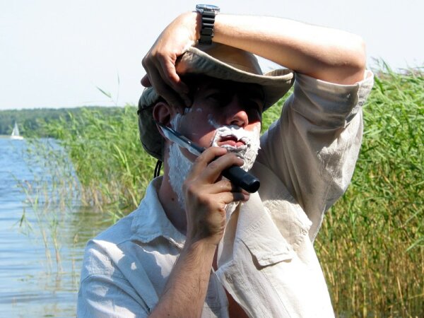 Po tej „wietnamskiej przygodzie” nie ma już chyba o czym pisać. Od tej pory nie ma dla mnie innego wyznacznika, jeśli chodzi o noże terenowe ogólnego zastosowania, niż Chris Reeve i seria 1-piece-range. Reszta rejsu upłynęła nam już w spokoju i MK.VI służył głównie w kambuzie, tudzież do zastrugania kijków na ognisko czy sprawiania ryby. Przedostatniego dnia podostrzyłem go maksymalnie na Gatco TriSteps i wygładziłem na skórzanym pasie. Efekt był tak dobry, iż postanowiłem się nieco pobawić i ogolić się moim nożem. Może nie wyszło to tak dobrze jak maszynką (oczywiście) ale jednak dało się to zrobić. Niby taka zabawa, ale jednak pokazuje, na jaką ostrość można liczyć w tych nożach. Generalnie stale węglowe dają się bez większych trudności wyostrzyć na brzytwę, co nie jest wcale ani proste ani łatwe w klingach ze stali nierdzewnej.