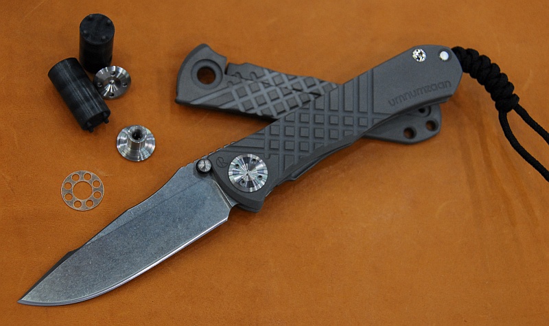 Przemyślenia n/t Umnumzaan'a kolegi Thorneb'a - specjalisty w zakresie noży taktycznych. Postanowiłem spisać kilka swoich przemyśleń na temat tego noża. Może ktoś znajdzie w poniższym tekście odpowiedzi na nurtujące go pytania i zdecyduje, czy Umnumzaan to nóż dla niego. Proszę pamiętać, że tekst jest naturalnie mocno subiektywny, a ja nigdy nie przypisywałem sobie nieomylności :) Miłej lektury. Pierwsze plotki o tym, że twórca legendarnej Sebenzy, Chris Reeve planuje wprowadzić do oferty swojej firmy nowy folder pojawiły się bodajże już w styczniu 2008 roku. Spekulacji było wiele, a oczekiwania bardzo wysokie, choć mocno rozbieżne w zależności od osoby. Jeden chciał tactical folder, inny slip jointa, ja po cichu liczyłem, że nowy folder będzie kolejną kooperacją Harsey-Reeve. W każdym razie czas powoli mijał, mnożyły się kolejne spekulacje, a Blade Show 2008 zbliżał się wielkimi krokami. Chris postawił przed sobą niezwykle trudne zadanie. Wiadomym było, że jego nowy projekt nie uniknie porównań z Sebenzą - moim zdaniem jednym z najbardziej przełomowych folderów, o ile nie najbardziej przełomowym folderem naszych czasów. Oczywiście nie każdy musi lubić Sebenzę. Dla osób nie znających historii tego projektu może wydawać się on mało rewolucyjny, ale w 1987 nóż z nowatorskim wtedy framelockiem, rękojeścią z tytanu i klingą z topowej stali musiał robić wrażenie. Dzisiaj folderów z framelockiem i tytanową rękojeścią mamy całkiem sporo i to chyba najlepiej świadczy o olbrzymim wpływie Sebenzy na cały przemysł. Wracając jednak do meritum… już pierwszego dnia Blade Show 2008 w sieci umieszczono fotki nowego foldera o trudnej dla wielu do wymówienia nazwie Umnumzaan. Na wielu forach zapanował króciutki moment ogólnej konsternacji poprzedzony wieloma głosami rozczarowania i krytyki. Lista grzechów była długa: niepotrzebny i najpewniej ostry glass breaker, wyglądający na zaostrzony swedge, duża i dziwnie wyglądająca oś główna, kratownica na rękojeści, gumki na kołkach, których zgubienie mogło, jak wielu zakładało spowodować bladeplay i do tego jakaś cermaiczna kulka w listu frame`a?! Nie ma co, Chris wszystkich mocno zaszokował :) Mnie również. Jednak uczciwie przyznam, że wiele z tych zarzutów wynikało z prostego faktu - nikt nie miał tego noża WE WŁASNEJ DŁONI. W dalszej częsci tego tekstu postaram ustosunkować się do wczesniej wspomnianych "problemów" Umnumzaana.