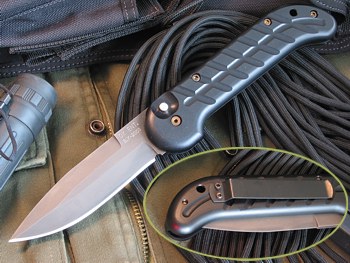 Uwagi: Ojciec współczesnych noży automatycznych. Powstał w 1985 roku i był na ten czas konstrukcją przełomową. Pierwszy raz połączono okładziny z litego stopu aluminium, spiralną sprężyną oraz blokadę plunge-lock. Nóż ten stworzono we współpracy z jednostkami specjalnymi szukającymi niezawodnego i szybkiego noża składanego. Z czasem do noża przylgnęła na dobre nazwa "black knife"... nikt nie wie, czy bardziej z powodu koloru, czy zadań jakie mu powierzano. Charles Ochs, założyciel kuźni-manufaktury "OX Forge", od lat robi te noże dla agencji rządowych w USA w niezmienionej formie, z kutej stali nierdzewnej 440C oksydowanej w tradycyjy sposób. Nóż ten sprawdził się przez lata służby... i nadal jest jednym z najlepszych noży tego typu. Jedynym problemem jest dostępność, gdy ogromna większość tych noży trafia w ręce "Military & Law Enforcement". Kawał historii noża i owiana legendą klasyka służąca do dziś w formacjach takich jak SEALS, DELTA, SWAT... duża rzecz!