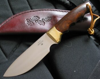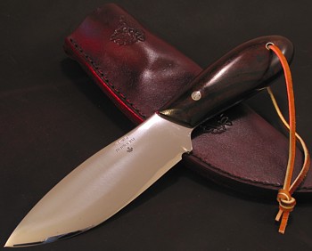 Uwagi: Noże wykonywane ręcznie przez George'a Tichbourne'a to po prostu sztuka użytkowa. Doskonałe opanowanie materiału, warsztatu oraz talent i doświadczenie czynią z noży George'a poszukiwane i skuteczne w działaniu narzędzia dla leśników, myśliwych, traperów, podróżników... czy wreszcie dla każdego, kto szuka dobrego noża z duszą. Moose Hunter to typowy przykład przybocznego noża trapera z północnej Kanady.