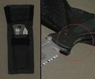 Pochwa: Nóż wyposażony jest w dopasowaną od jego kształtu pochwę z cordury. Pochwa zapinana jest taśmą Velcro (rzep) i umożliwia noszenie noża w pionie i w poziomie. Nie ma na niej żadnych oznaczeń, co powoduje, że noszona poziomo na szerokim, czarnym pasku zlewa się z nim i nóż nie rzuca się w oczy. Z tak zamocowanej pochwy nóż można wydobyć j otworzyć jednym, szybkim ruchem ręki. Osobie, która udostępniła mi nóż wyjęcie, otworzenie i mocne uchwycenie noża nie zajmuje więcej niż pół sekundy. Blokada: Można by się spodziewać, że nóż automatyczny wyposażony zostanie w blokadę typu Plunge Lock. Jednak takie rozwiązanie w przypadku noża do samoobrony ma jedną zasadniczą wadę. Jeżeli nóż wyjmowany jest w stresie (a w przypadku samoobrony tak właśnie zwykle jest) to po wciśnięciu przycisku może się zdarzyć, że nie rozluźnimy dłoni - a wtedy ostrze mimo, że rozłożone, nie jest zablokowane. Podobnie może się stać przy chwycie noża takim, jak na zdjęciu poniżej. Jakiekolwiek uderzenie w grzbiet ostrza spowoduje wtedy poważne obrażenia, lub nawet utratę palców. Na szczęście projektanci technologiczni firmy MOD przewidzieli taką sytuację i zastosowali rozwiązanie hybrydowe. Otwieranie ostrza przyciskiem tak jak w automatach "Plunge Lock", natomiast blokada jest zmodyfikowanym, pogrubionym wzmocnionym LinerLockiem. Teraz ostrze blokowane jest natychmiast po rozłożeniu ostrza, niezależnie od chwytu i ułożenia ręki. Chwyt "płaski" jest więc w przypadku tego noża chwytem całkowicie bezpiecznym. Blokada LinerLock w Hornecie ma grubość prawie dwa razy większą niż w nożach większości firm i wytrzymuje obciążenie ponad 200 funtów! |