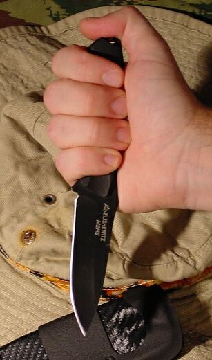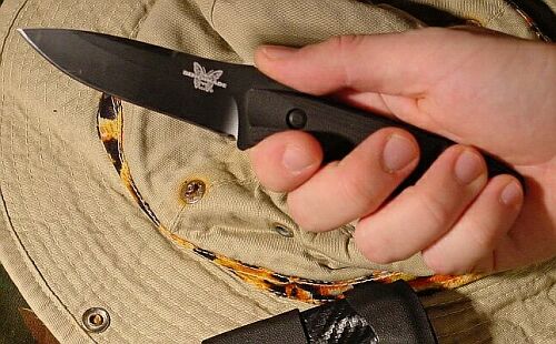 Wykonanie: Nimravus Cub tak jak wszystkie noże Benchmade wykonany jest perfekcyjnie. Idealny, symetryczny szlif, ostrze pozwalające się ogolić. Okładziny wyprofilowane tak, że pasują jak rękawiczka. Do tego pozorne drobiazgi, jak śruby TORX zamiast nitów czy "wystające" ząbkowanie pod kciuk (nie wgłębne, które jest technologicznie dużo prostsze do wykonania). Krawędzie na rękojeści są lekko sfazowane tak, że nie wbijają się w dłoń. Wszystko to składa się na idealnie zaprojektowany i wykonany nóż, co oczywiście wpływa na opinię o firmie Benchmade uznawanej, nie bez powodu, za Mercedesa wśród producentów noży. Ergonomia: Nóż świetnie leży w ręce. Rękojeść wyprofilowana jest tak, że ręka dłoń nie męczy się ani podczas lekkich, precyzyjnych cięć ani podczas mocniejszych prac jak struganie. Profil rękojeści umożliwia operowanie nożem w różnych pozycjach. Ujęcie pełną dłonią do cięższych prac, lekkie prowadzenie ostrza z kciukiem na grzbiecie noża czy precyzyjne cięcie z palcem wskazującym na klindze - wszystkie te pozycje zapewniają komfort pracy. Nóż wyważony jest na rękojeści, około 2cm za gardą. Nimravus Cub jest na tyle lekki, że nawet noszony co dzień nie będzie nadmiernie obciążał spodni. W sumie jest to zgrabne mocne i użyteczne narzędzie pracy. |