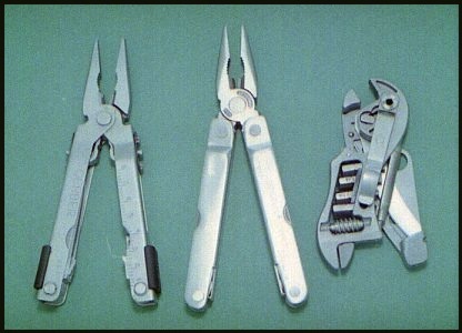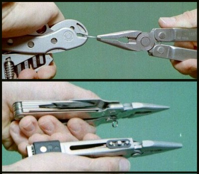 Leatherman, oraz nowatorski tool Spyderco (przedstawione są na zdjęciu w tej kolejności