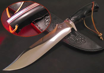 Uwagi: Noże wykonywane ręcznie przez George'a Tichbourne'a to po prostu sztuka użytkowa. Doskonałe opanowanie materiału, warsztatu oraz talent i doświadczenie czynią z noży George'a poszukiwane i skuteczne w działaniu narzędzia dla leśników, myśliwych, traperów, podróżników... czy wreszcie dla każdego, kto szuka dobrego noża z duszą. Riverboat Wilderness Bowie to potężna maszyna terenowa do cięcia, karczowania i prac obozowych.